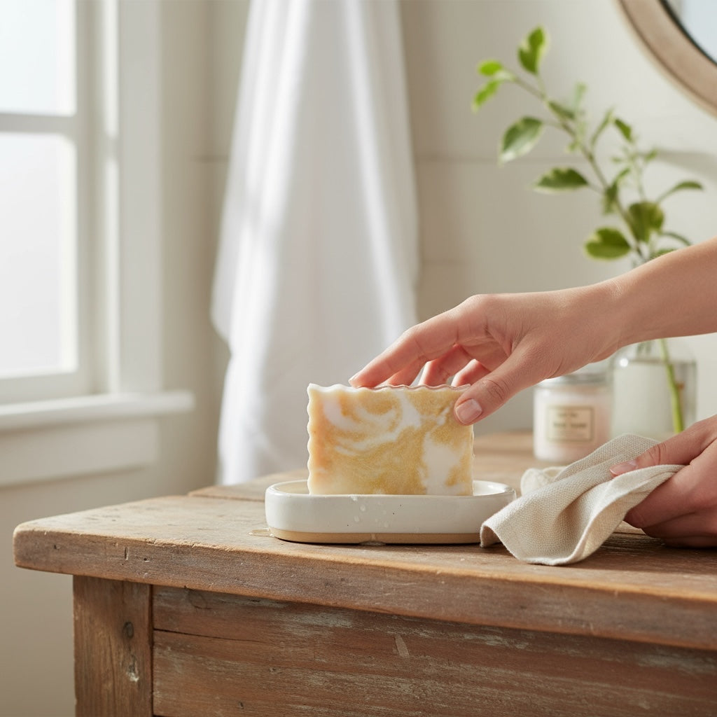 Chaque savon est soigneusement fabriqué à la main dans notre atelier, avec une base douce et hydratante qui nettoie sans dessécher la peau.