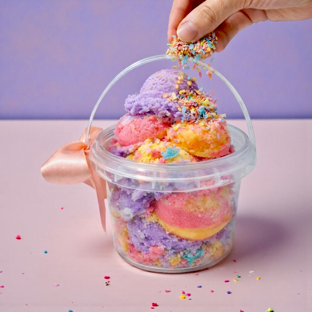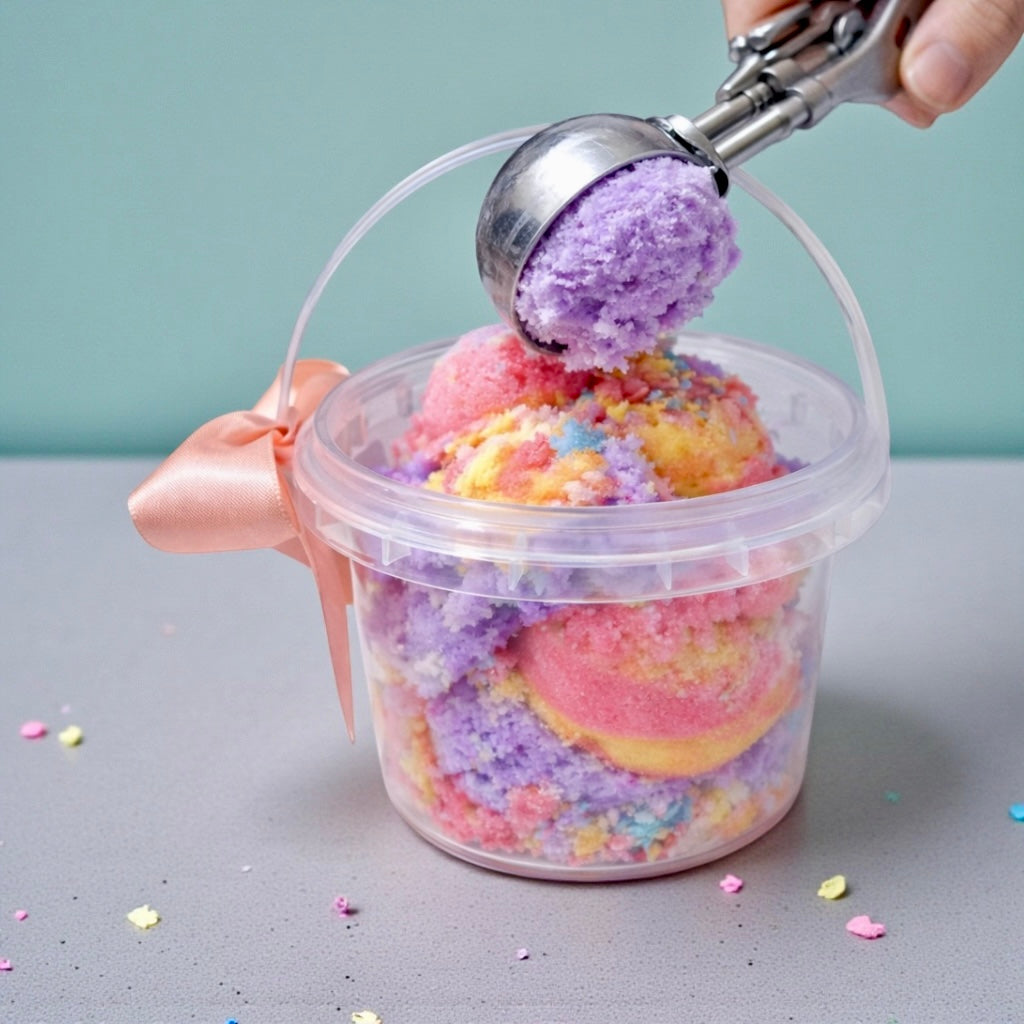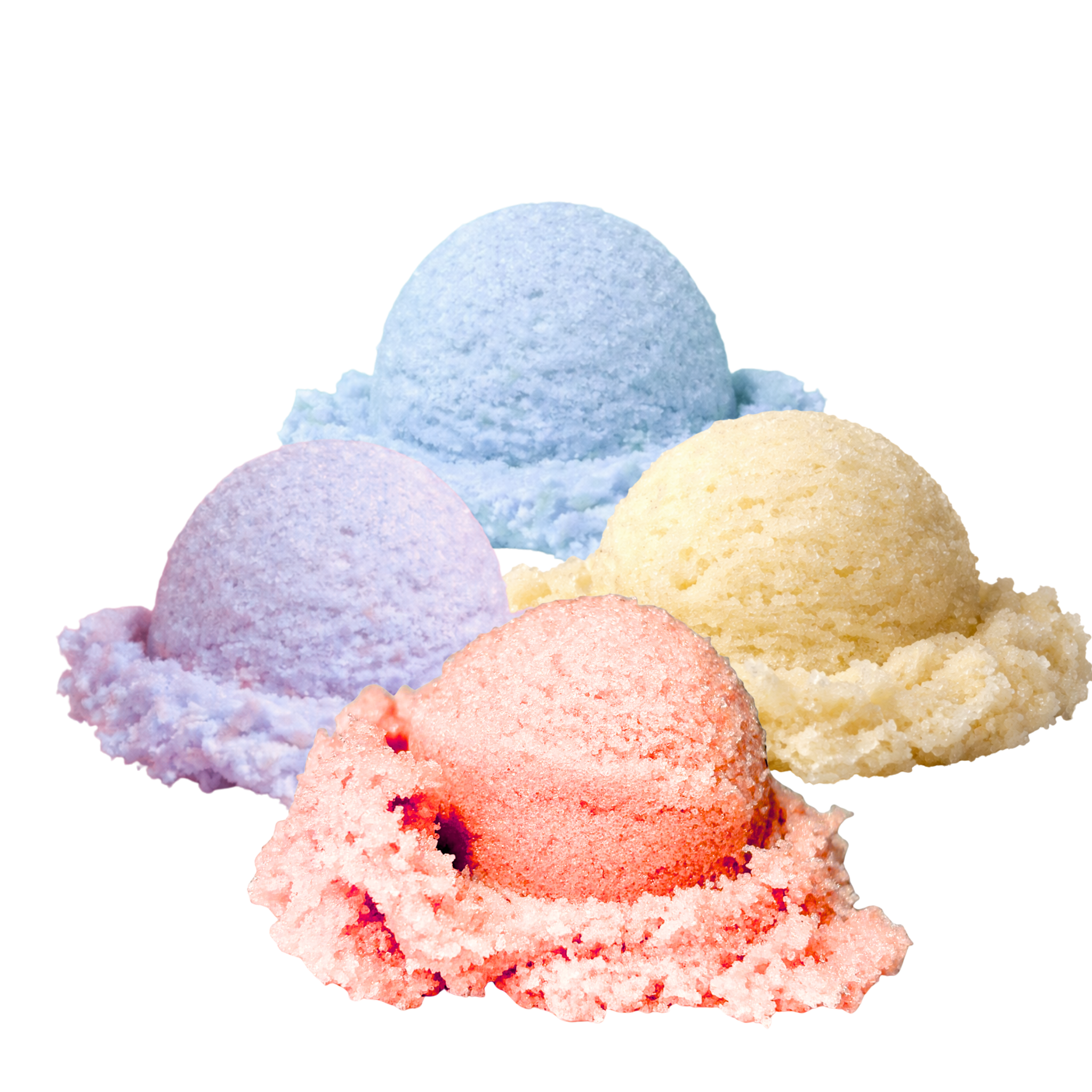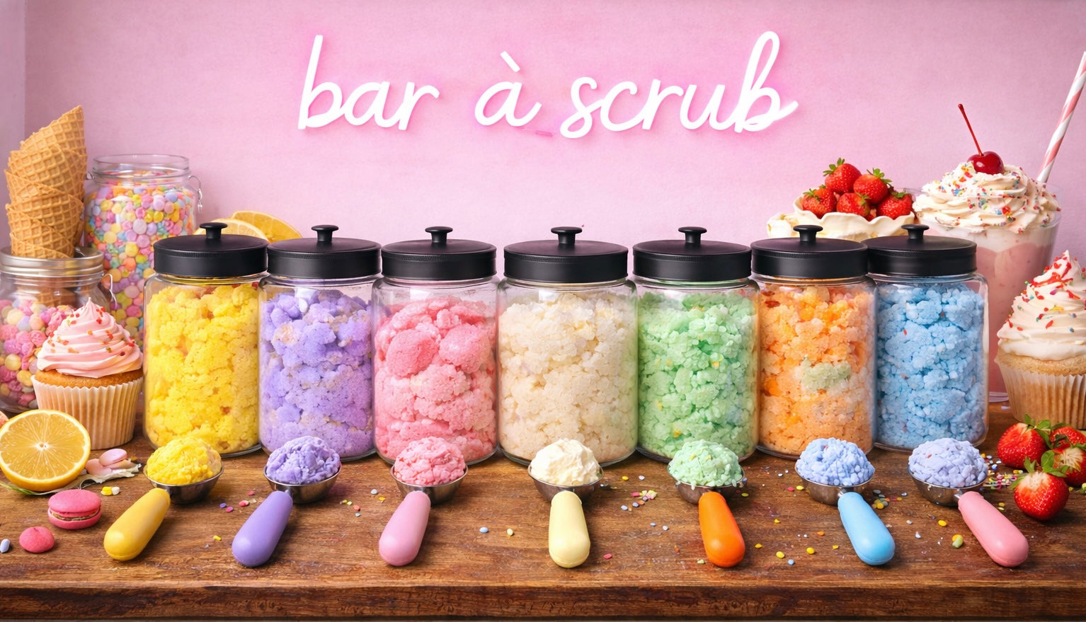 Le scrub est présenté dans un contenant transparent de type crèmerie / crème glacée ou dans un contenant de plastique, selon la disponibilité.