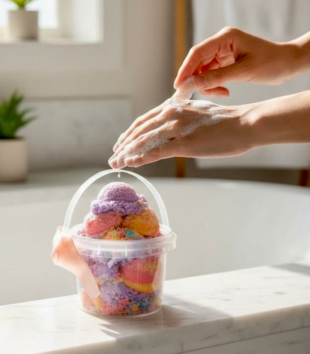Chaque boule est généreuse et pèse environ 100 g. ce qui correspond généralement à 3 à 5 utilisations, selon la générosité à l'application, la fréquence et les zones exfoliées.